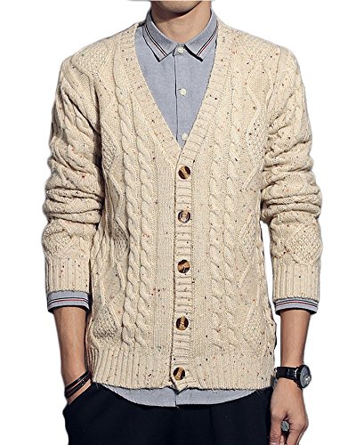 -. Title : (エスライフ)S-Lifeeling セーター カーディガン ニット 純色 カットソー おしゃれ ケーブル編み メンズ 無地 ボタン 長袖 Vネック 秋 冬 春 ウール ベスト メンズセーター