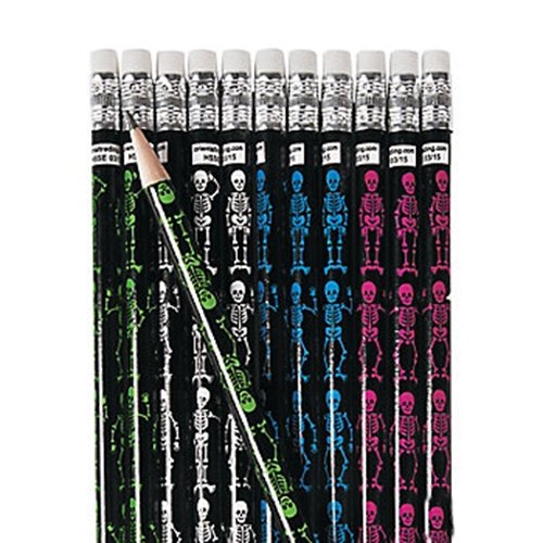 Studio : SmallToys Publisher : SmallToys Binding : Toy Product Description Skeleton Pencils - 12 per pack - 7 1/2 inch skeleton No. 2 pencils. Assorted colors. Each dozen in polybag with printed header. Great for incentives at school, as party favors or for trick or treators. 0