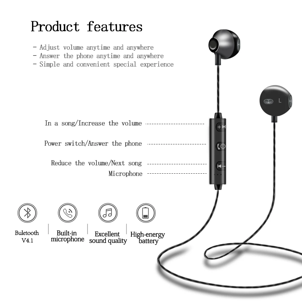 Feature 2:stereo music Neckband Headset