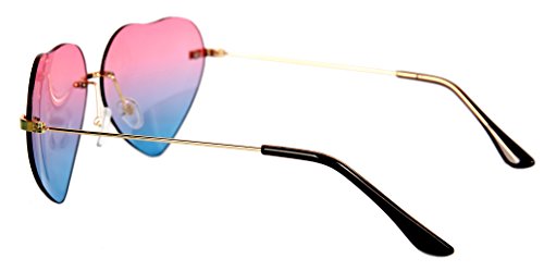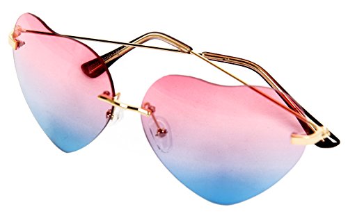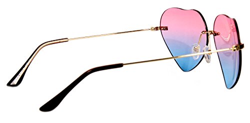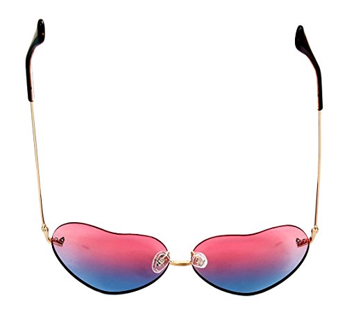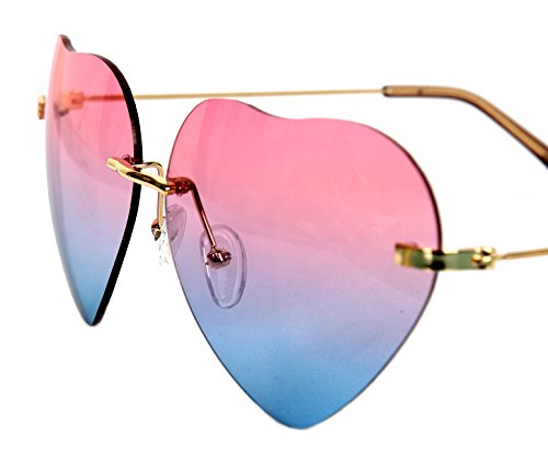 These fresh and funky heart glasses are guaranteed to get you noticed this summer! With a beautiful shade of pink fading in to blue you really would of knocked that amazing retro 90's look on the head!! Perfect for music festivals! • Gorgeous Heart Shape Fade Effect Sunglasses • Gold Trimming and Brown Coated Temple Tips • Adjusting Nose Pads For Comfort • Size: 143 X54mmFeature