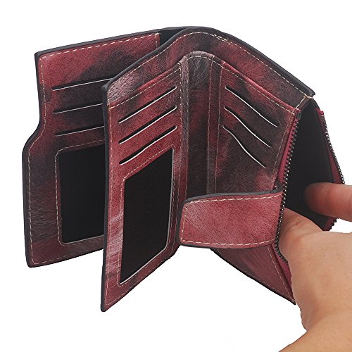 -. Binding : Apparel -. Brand : YUI -. Department : womens -. Feature : Bifold Wallet with a trifold zipper closure coin pocket. / 12 slots for ID cards, credit cards, membership cards or driving license, 5 extra large card slots. / Large capacity of cash, at least 15 paper money. The pocket can hold some nickels. / Dimensions: 5*4*0.8 inches. / Package box included. -. Model : YUI-LW003 -. PackageQuantity : 1 -. ProductGroup : Apparel -. ProductTypeName : ACCESSORY -. Size : One Size -. Title : Women's Cards Holder Weave Small Bifold Button Closure Wallet Coins Zipper Pocket