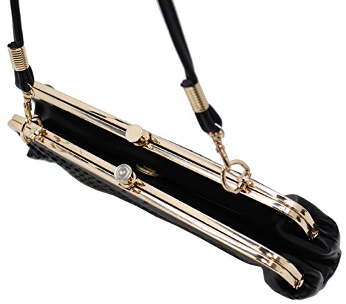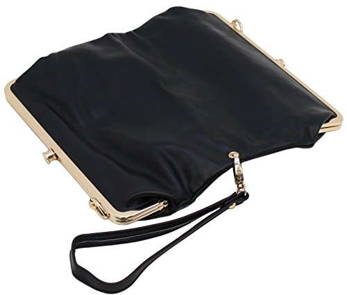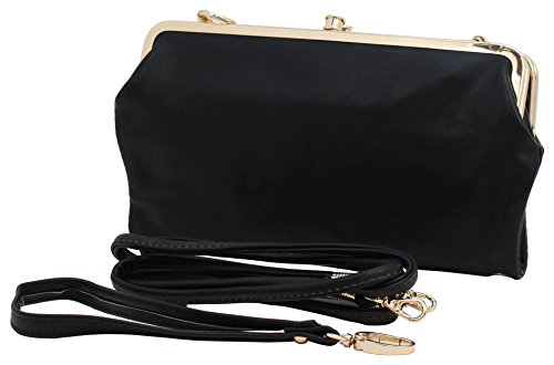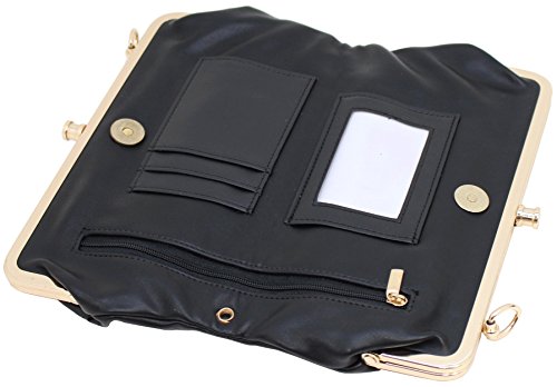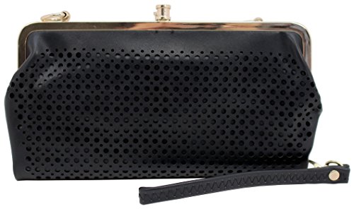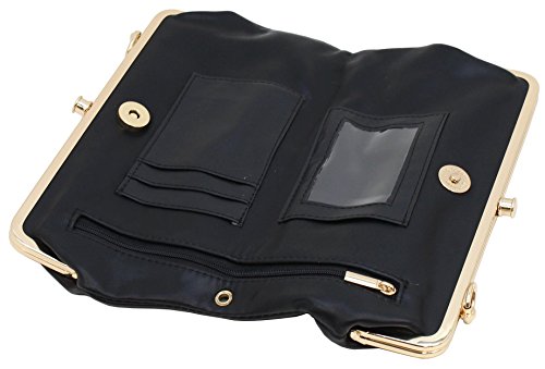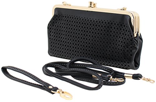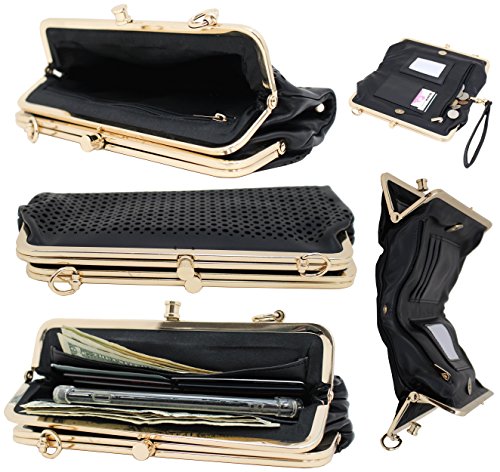 -. Brand : Amy & Joey -. Department : womens -. Feature : 9.5"(L) x 5"(H) x 1.75"(W) with gold tone hardware. ( removable cross body strap 26" drop max) / Faux leather material with laser cut out / Two frame top closure with 1 zipper pocket 6 credit card slots and 2 full size bill comparts / There are additional 3 credit card slots, 1 ID window and zipper pocket once it is unfolded. / I phone 7 plus fits inside. -. ProductGroup : Shoes -. ProductTypeName : HANDBAG -. Title : Amy&Joey faux leather double frame multi functional wallets clutch bags crossbody bag