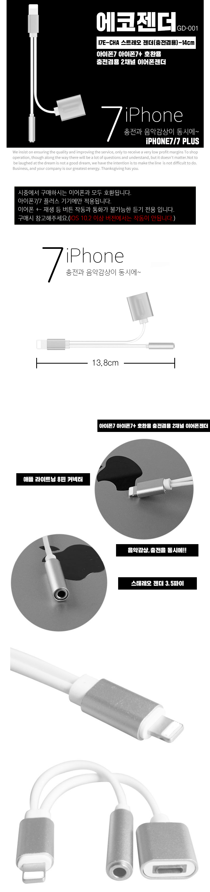 GD-001 iPhone 7 7+ compatible 2 channel earphone cable echo gender