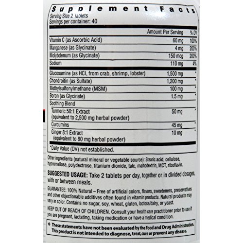 -. Feature : Promote joint strength, health / Provides strengthening support for cartilage, connective tissue, joint health and fluidity / For Short and Long Term Support / 1500 mg Glucosamine, 1200 mg Chondroitin and 100 mg MSM / Purity Guarantee: Gluten-Free, Sugar-Free, Lactose-Free and 100% Natural