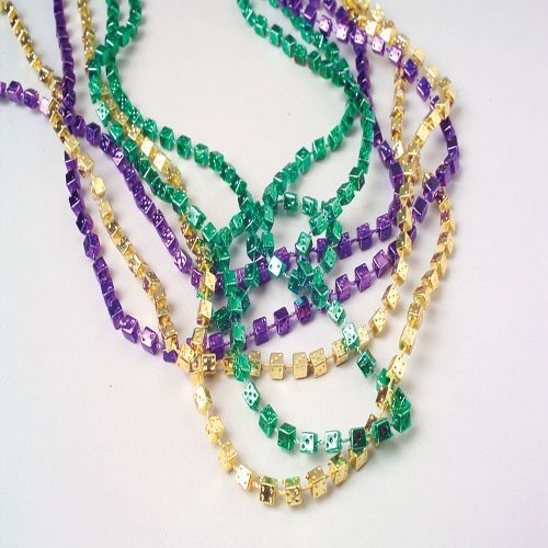 3 DOZEN (36) Strands MARDI GRAS BEADS 33" NECKLACES 4 mm DICE SHAPED - Metallic GOLD Green Purple - CARNIVAL - PARADE