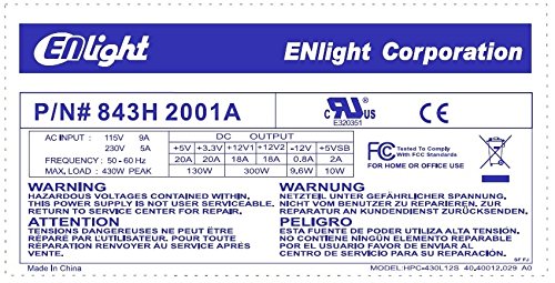 Enlight 843H2001A 430W ATX 20/24PIN 80mm Fan 4x SATA PCI-E Bulk with Power Cord