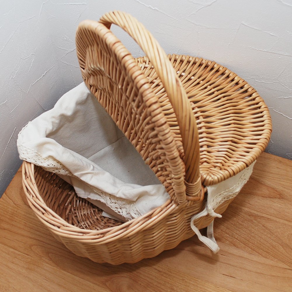 [Mercado basket storage miscellaneous goods shop] lid with Wicker picnic basket (race)