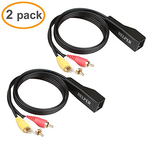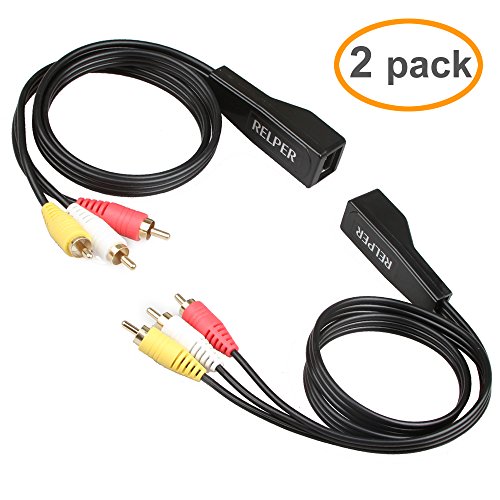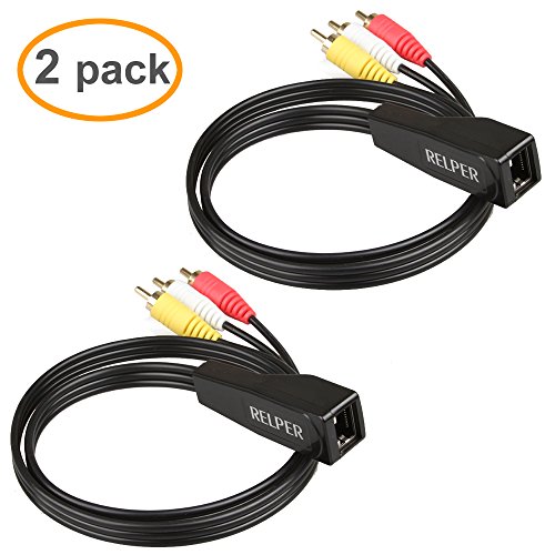 RELPER 2 Pack 3 RCA to RJ45 Balun Component Video and Audio Extender Over Cat5/6 Up to 600ft/200M