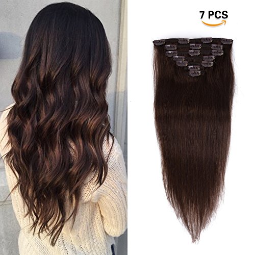 WINSKY Clip in Hair Extensions Shining Straight hairstyle Dark Brown #2 Color