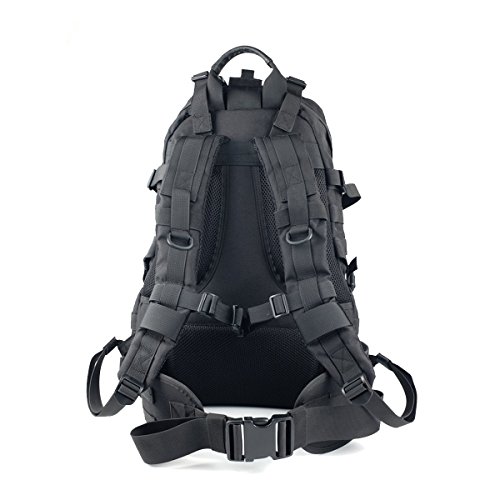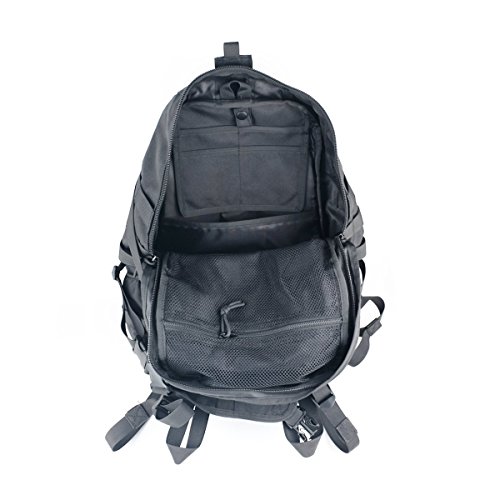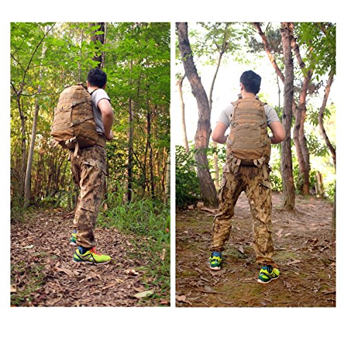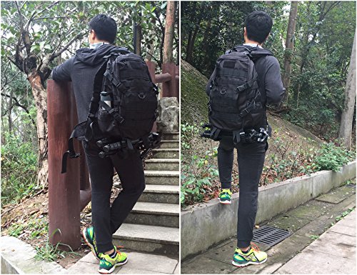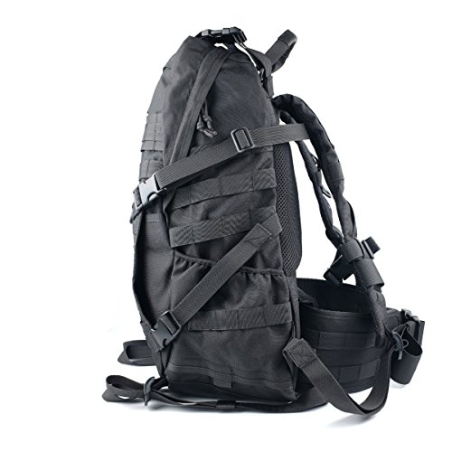 -. Feature : Large load cargo capacity compartment - 40L Capacity (Dimensions: approx. 20"x12.5"x8"); Made of High-density Oxford nylon fabric (1000D-more stronger than any other ones in the market 600D, more strong and durable), scratch-resistant / All the stitching and webbing, are used in military specification nylon material, longer straps slider, sleek, durable / MOLLE external expansion system designed to be used in combination with other equipment, you can load pockets, water bottle bag, accessory kits and other. Specialized compatible with Hydration System / Heavy duty big teeth zippers with paracord, shoulder straps with D-Ring for equipment attachment, sternum starp, waist belt (detachable) / The bag with large capacity is suitable for 3 day hiking, travelling, camping and other outdoor sports