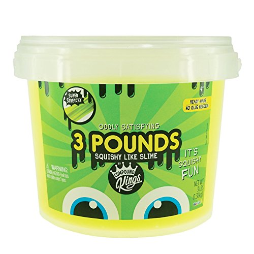 You'll never lose this slime compound with its bright neon colors. The neon truly makes this slime look like an icky radioactive substance for fun tricks and pretend play. Plus it's just a simple fact that the brighter the slime, the more fun it is during playtime. Squish, squeeze, knead, and pull, slime is the original fidget toy. The viscosity of slime compounds makes them more relaxing and fun than toy clays and putties. They're drippy and droopy for slippery sliding fun. You can use it as a toy or even as a satisfying fidgeter or stress reliever. Slime is the best all around compound. You don't need glue, soap, any chemicals, or compounds to have your own slime fun! These compounds come ready made and ready for play right out of the container so you can eliminate the mess and waste of letting your kids make their own experimental slime creations. This compound is neat, clean, safe, and ready for fun. The biggest problem with homemade slime is that it gets totally everywhere. This compound slips and slides, but stays together. It sticks to itself so it doesn't stay on your hand when you're done playing and doesn't leave behind any harmful chemical residue. It's the kind of compound that you can trust around your child. Package contains (1) Compound Kings 3 Pounds Squishy Like Slime Compound by Compound Kings, the makers of Bobble Bitz. Contains three pounds of neon yellow squishy like slme compound. Ready made - no glue needed. Recommended for ages 4 years and older.Feature