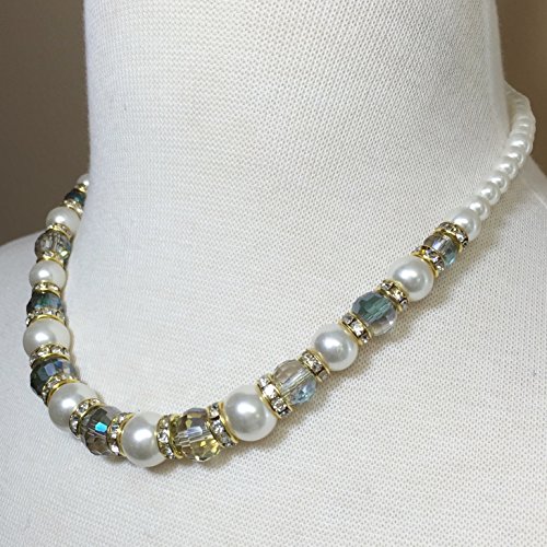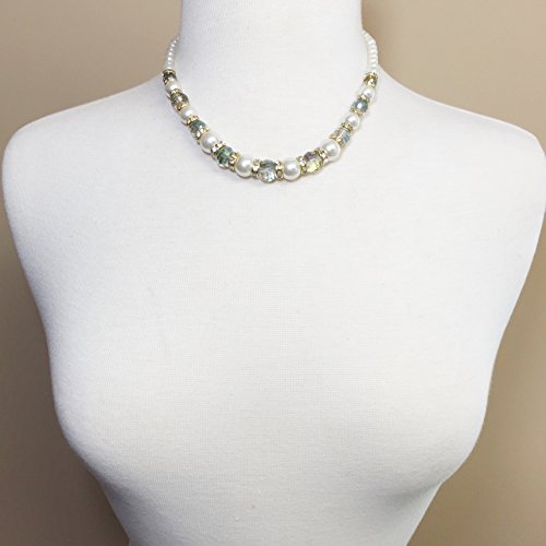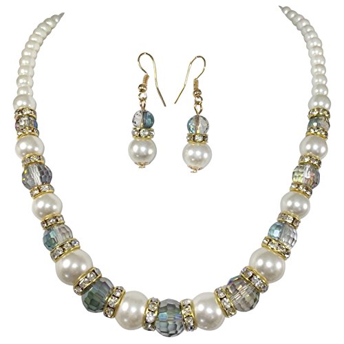 Imitation Pearl with Green Beveled Glass Beads & Rhinestones Necklace & Earrings Set