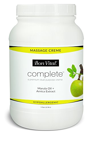 ReleaseDate : 2017-11-13 Studio : Bon Vital Publisher : Bon Vital Binding : Misc. Product Description Bon Vital, the #1 preferred brand of massage therapists focusing on professional quality products, brings you a premium dual purpose massage creme designed to provide ultimate versatility and healthy skin therapeutic benefits for all massage modalities and techniques. The Bon Vital’ Complete Massage Creme leverages the restorative and moisturizing powers of Marula, Olive, Avocado, and Jojoba Oils coupled with the anti-inflammatory and calming effects of Arnica, Horse Chestnut, and Ivy Extracts. The unscented formula is ideal for blending with Bon Vital’ essential oils to create the ultimate aromatherapy massage experience. 0
