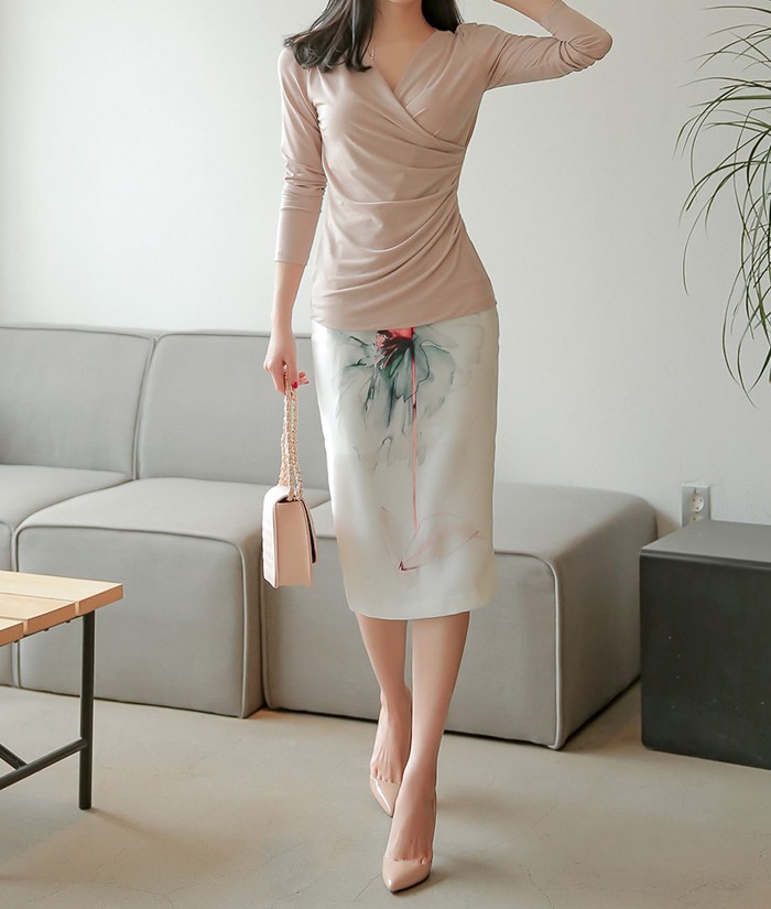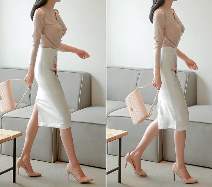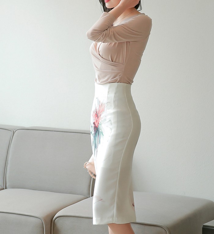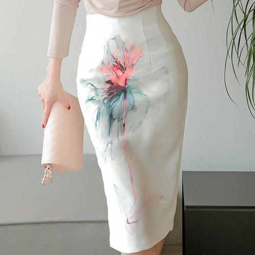 商品名:ペンシルスカート ハイウエスト 花柄 きれいめ 通勤 ロング丈