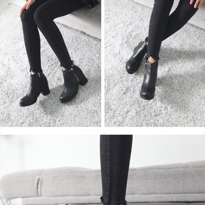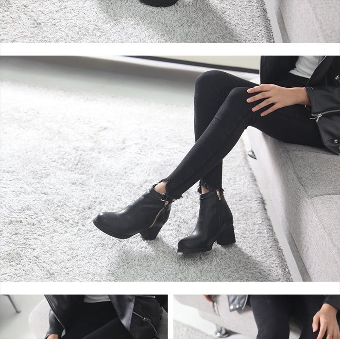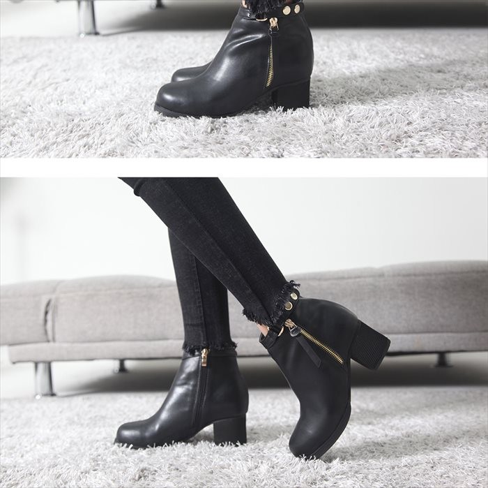 商品名:ブーティ レディース ブーティー チャンキーヒール 太ヒール サイドジッパー 2017 秋冬 ファッション 靴 婦人靴