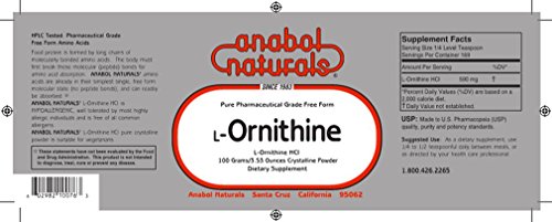 -. Binding : Health and Beauty -. Brand : Anabol Naturals -. EAN : 0602982100763 -. Feature : Anabol Naturals L-Ornithine is the absolute purest and highest quality pharmaceutical grade free form crystalline. / L-Ornithine has been used for sports nutrition,healthy aging and longevity. / Anabol Naturals is the most trusted name in free form amino acids and L-Ornithine crystalline is the purest L-Ornithine available. / 100 Grams of pure crystalline L-Ornithine powder is equivalent to the contents of 200 of L-Ornithine 500mg capsules. / List P.R.Ice, 27.95 -. IsAdultProduct : 0 -. Label : Anabol Naturals -. Manufacturer : Anabol Naturals -. MPN : P10076 -. PackageQuantity : 1 -. PartNumber : P10076 -. ProductGroup : Health and Beauty -. ProductTypeName : HEALTH_PERSONAL_CARE -. Publisher : Anabol Naturals -. Studio : Anabol Naturals -. Title : Anabol Naturals L-Ornithine 100 Grams Pure Powder -. UPC : 602982100763