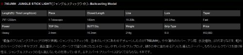부드럽게 구부러짐,달라 붙는 것은 로드 러너라면 나옴은. 「최강의 프리《핀구스팃쿠》」의 외치는 소리 높은 정글 스틱을,일본의 레이크에 맞춰 데 튠(tune) 한 것이「760JMH」.약간 묽게하의 커버,전갱이제,수몰 식물,쓰레기인 마리 등을,가벼운 러버 지그나 텍사스 도구,고비중 계노《―신카리구》에 노릴 때도 콘트롤 하기 쉬운 라이트 flip 로드.경도 중에(속에) 먹게 하는《아소비》도 구비한(갖춘) 테이퍼.물론 토크에 버스를 제치는 특성은,정글 스틱의 명(이름)에 부끄럽지 않은 것 를 가지고 있습니다.엑스퍼트 플리퍼에는 없어서는 안 되는 1개입니다.