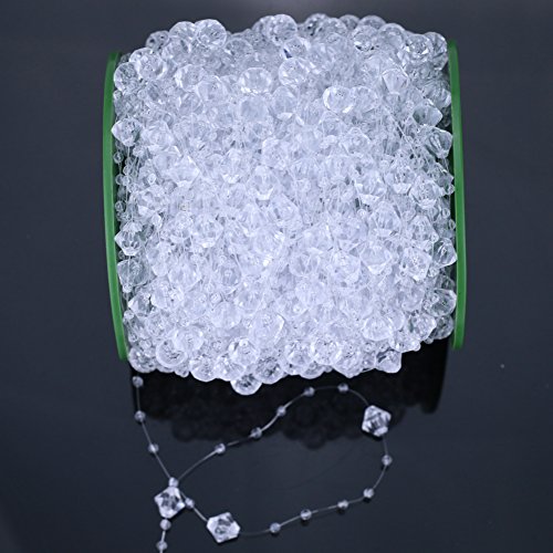 Hilitchi 200 Feet Roll Clear Crystal Diamond Acrylic Faux Crystal Beads by the Roll for Flowers Wedding Party Decoration