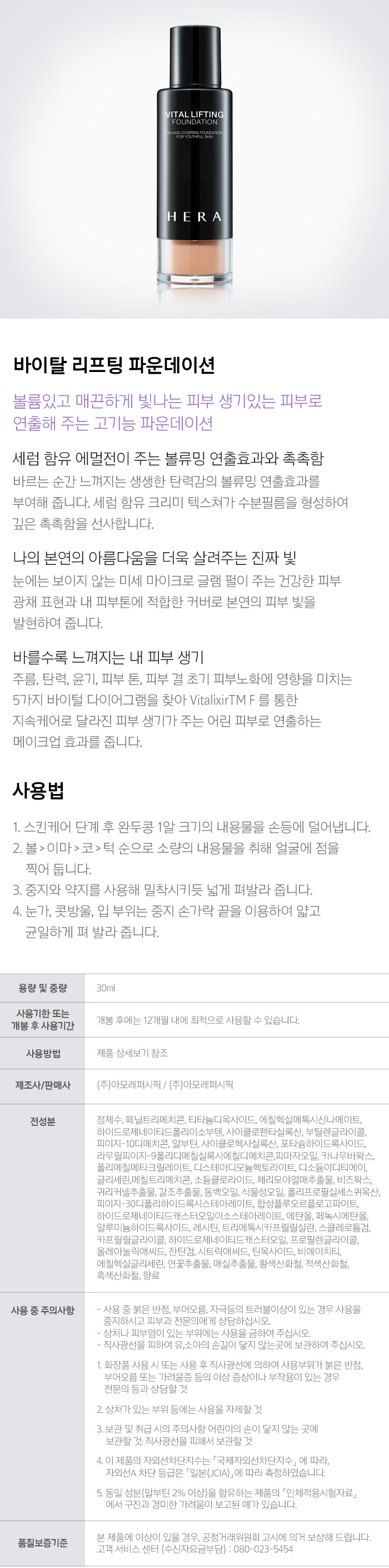 | - | 바이탈 리프팅 파운데이션 SPF25/PA++ 30ml (색상 택1)