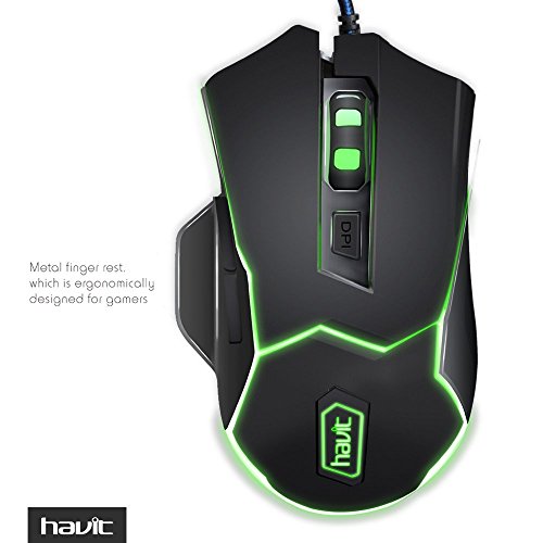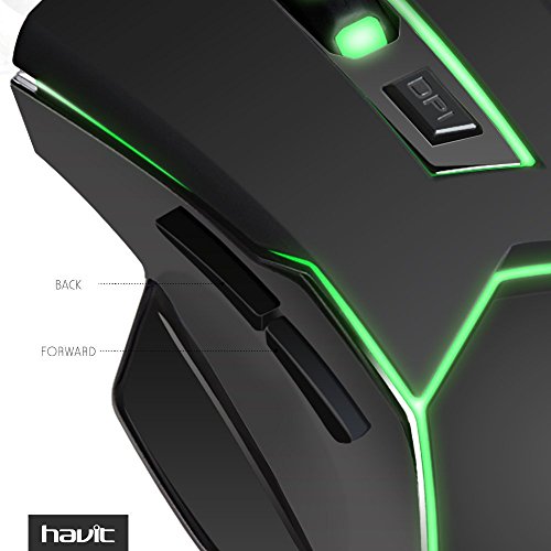 [HAVIT HV-MS720 USB Wired LED Optical Gaming Mouse for PC and Laptop, with Green Breathing Light, 4 Adjustable DPI:800/1600/2400/3200, 6 Buttons]