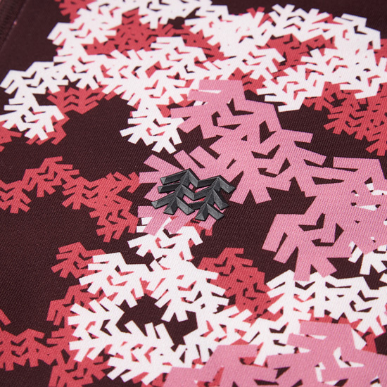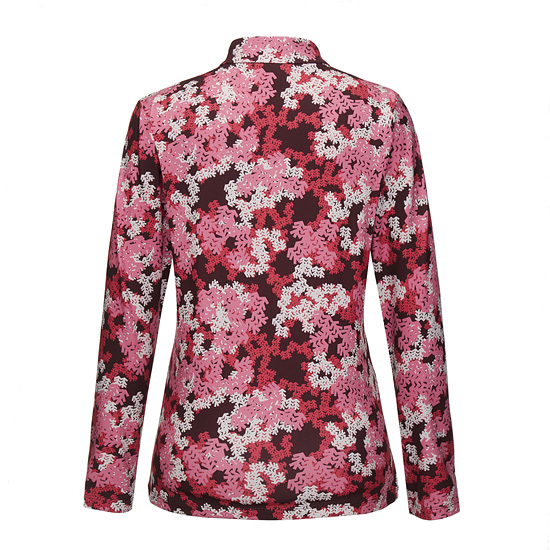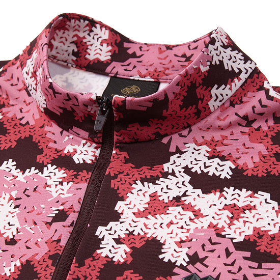 - 전판에 상록수를 모티브로한 카무 프린트를 적용한 여성 집업 티셔츠.
