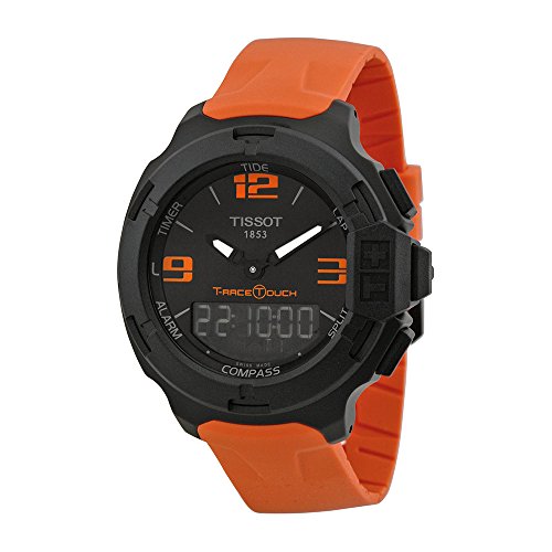 -. Feature : T-Race Touch black dial orange rubber men's watch / Luminescent hands and markers. Digital perpetual calendar. Quartz movement. Scratch resistant sapphire crystal. Solid case back / Swiss-quartz Movement / Case Diameter: 42mm / Water Resistant To 330 Feet