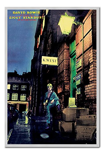 -. Title : David Bowie Ziggy Stardust Album Cover Poster Magnetic Notice Board Silver Framed - 96.5 x 66 cms (Approx 38 x 26 inches)