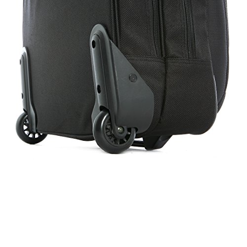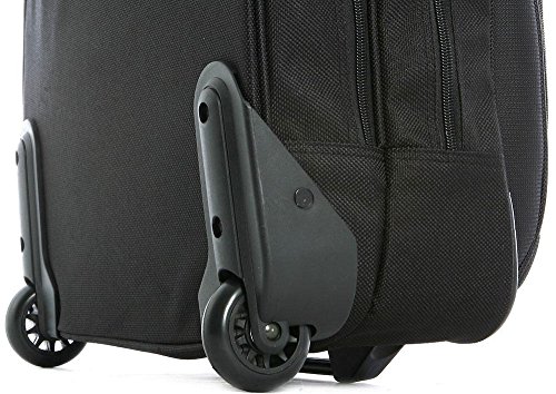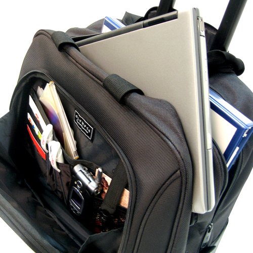 Studio : Olympia Luggage Publisher : Olympia Luggage Binding : Apparel Product Description This hybrid deluxe rolling tote with laptop compartment is constructed of polycarbonate with 1680 d, ballistic, corner cut metal ball bearing wheels, hideaway push button retractable handle, heavily padded main laptop compartment, spacious main compartment for maximum packing capacity, multi front pockets, elegantly imprinted full interior lining 0