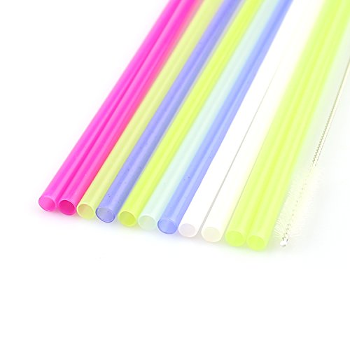 12 Pieces Reusable Straws,Surprising Color Changing Drinking Straw with Individually Wrapped ,BPA-Free,9 " and 10.5" Thick Plastic Straw Fit for 20 30 OZ Tumbler Mason Jar,Cleaning Brush Included