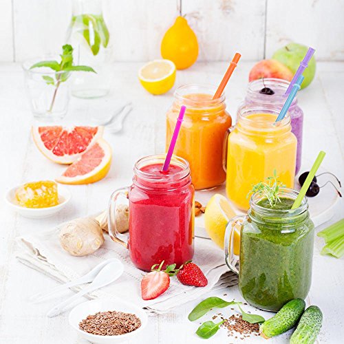 12 Safe and Reusable Straws (6 pieces straws with a ring): FDA approved food-grade thicken plastic,100% toxic-free and ultra durable. Biodegradable material that meets international hygiene standard could give you a sense of security and show our sincerity. After research and testing,no BPA or odor even in the environment of 212℉. Any smell, full refund