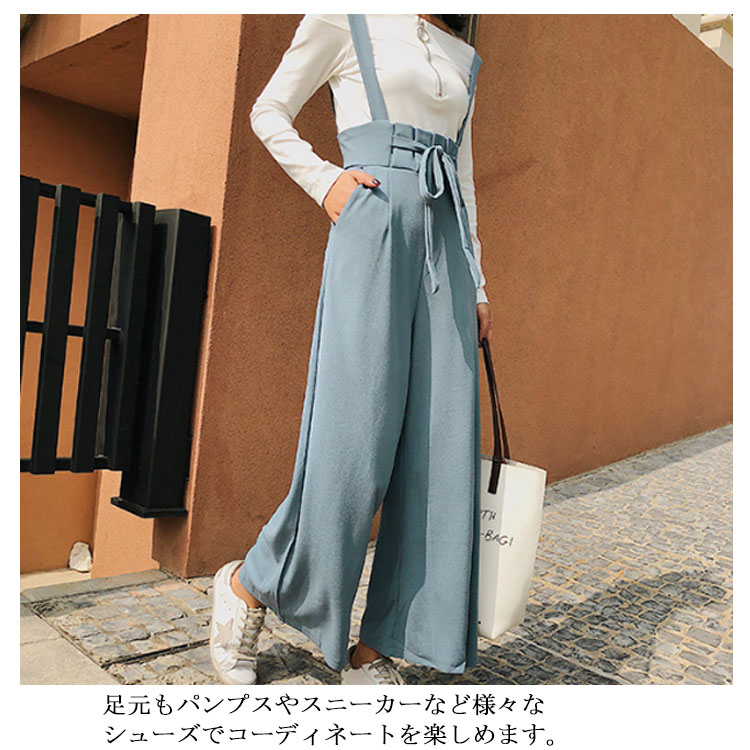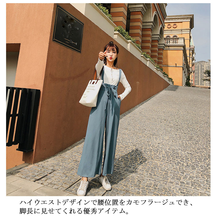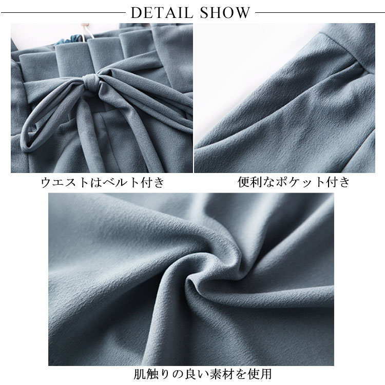 | 華奢なストラップが上品で女性らしい印象を演出してくれるワイドパンツ。ハイウエストデザインで腰位置をカモフラージュでき、脚長に見せてくれる優秀アイテム。足元もパンプスやスニーカーなど様々なシューズでコーディネートを楽しめます。通勤でも、お出かけも場所問わず気軽に使えます。 | |
