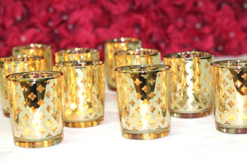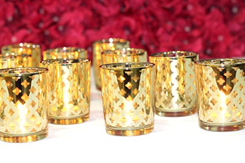 Mercury Votive Candle Holder. Set of 12 (Laser Cut Votive Candle Holder (Gold) Pack of 12.)