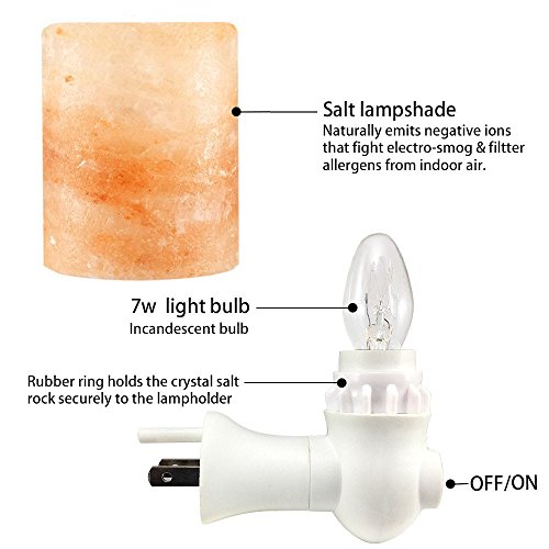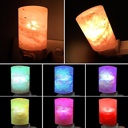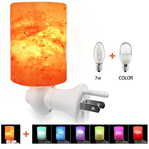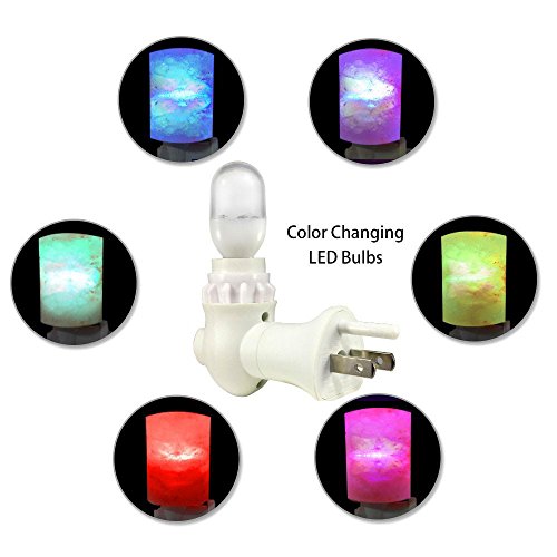 2 in 1 Multifunction Night Lights: Come with 2pcs bulbs: One 7W incandescent bulb - Not Dazzling but enough bright as a gentle nightlight for bedroom, creates a calming ambiance and helps release pressure; One LED Color Changing Bulbs - Automatically change 6 colors, creates colorful and romantic atmosphere, bring you different experience of salt lamp(One more choice, One more experience)