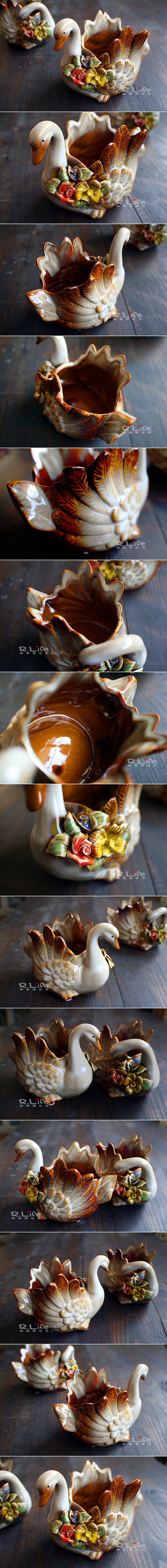 创意家居装饰品高温陶瓷小天鹅牙签罐/烛台收纳钥匙盒零钱罐礼物