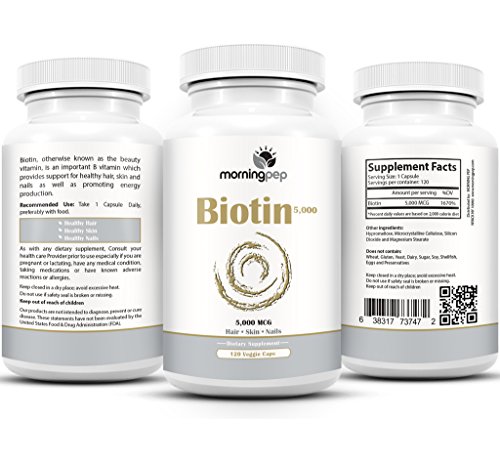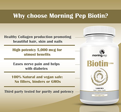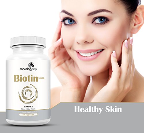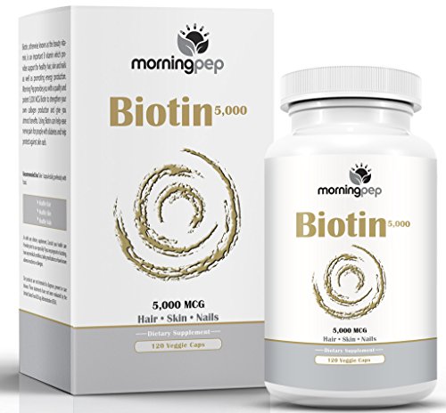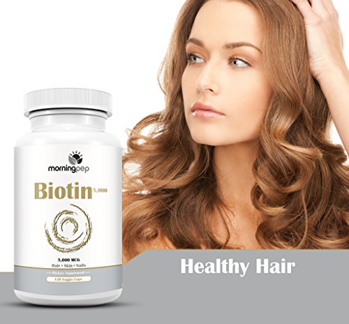 Biotin For Hair Growth Skin And nails Supplement 120 count High Potency 5,000 mcg (5 mg) By Morning Pep, Biotin Promotes Glowing Skin And Hair Growth...
