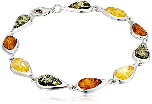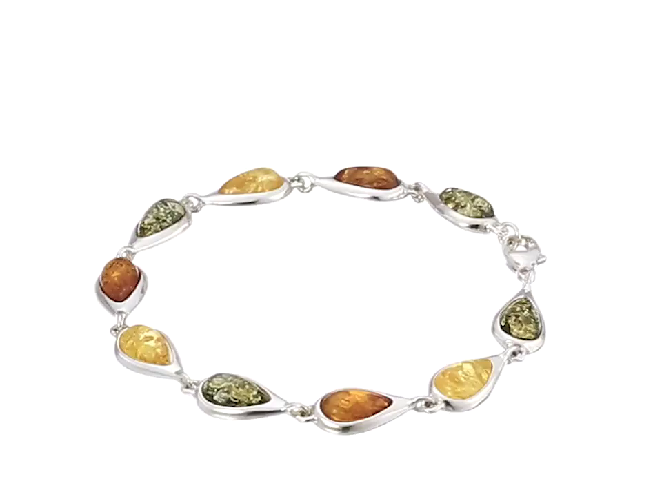 Sterling Silver Multi-Color Amber Teardrop Link Bracelet