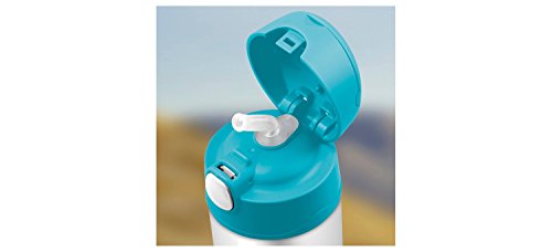 Proper hydration plays a key role in a healthy lifestyle and the 12-ounce FUNTAINER bottle from GENUINE THERMOS BRAND is a great product to fulfill any on-the-go hydration needs. Constructed with durable stainless steel and THERMOS vacuum insulation, this bottle keeps beverages cold for up to 12 hours. It features an integrated carrying loop and hygienic push button lid with a pop-up straw that is easy to open and comfortable to drink from. Not for use with hot liquids.