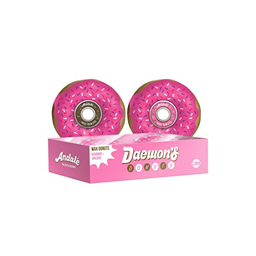 Studio : Andale Publisher : Andale Binding : Misc. Product Description Andale Daewon Song Donut Pro Rated Bearings, Set of 8 Bearings with 4 Bearing Spacers. Packaged with a Donut Wax with Removable Bearing Tube. HIGH SPEED Daewon Song Signature Pro Bearings. Premium Pro Rated Andale Bearings Tested and Selected by Daewon Song. Higher quality steel races, better quality and grade balls, and a superior surface finish. Single, non-contact, removable rubber shield for easy cleaning and less friction. High speed nylon ball retainer for greater strength and speed. High Impact Testing: These bearings have been tested against crushing forces of over a ton. 0