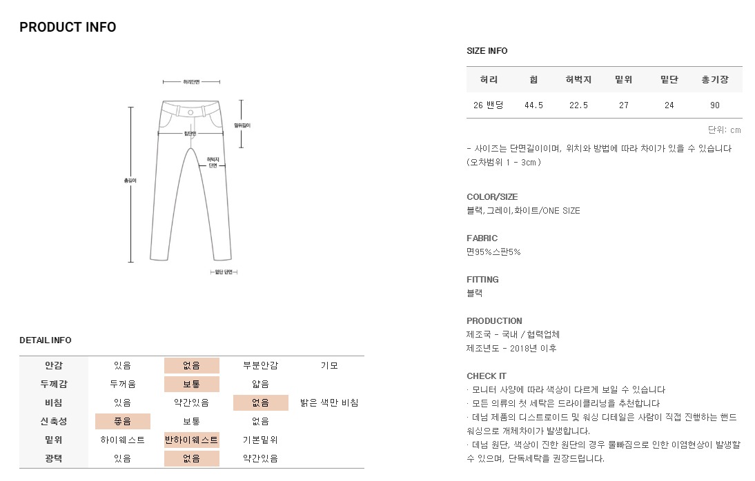 신축성 좋은 원단으로 편안한 착용감을 선사해드리고