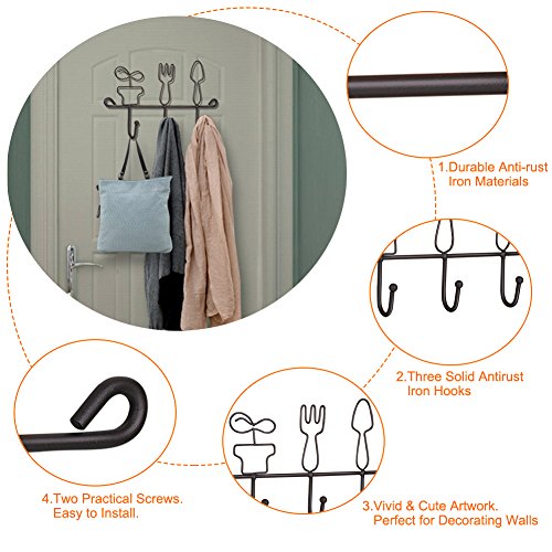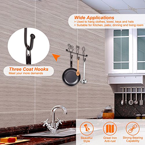 OMMITO Wall Mounted Hanging Hook Rack,11 Inch Cast Iron 3 Hooks Kitchen Home Restaurant Keys Coats