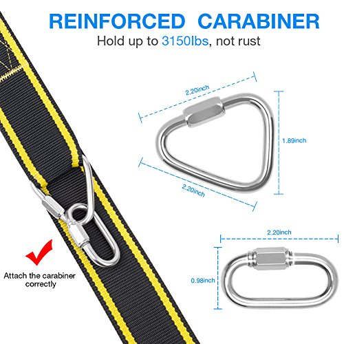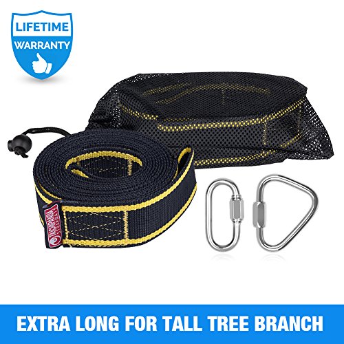 >>The wide strap is far less likely to damage tree branch than rope, and you won't have to worry about rope chaffing and fraying or about improperly ties knots giving way. And you'll never have to worry about the strength of the strap and carabiner set as our wide tree swing straps were made of high quality material which can hold up to 3150 lbs!