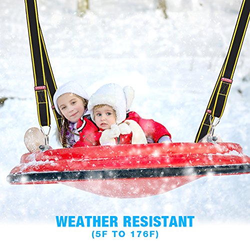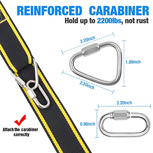 How to install the swing straps: 1.Toss these swing straps over a sturdy branch 2.Pull the slip-knot tight. 3.Use the carabiners to attach the swing to the hanging straps. Specification: Material: Polyester Weight Capacity: 3150 lbs Item Weight: 1.2 lbs Length: 10 Ft each strap Fit Swing Types: Classic swings/Garden swings/Toddler swings/Porch swings/Patio swings