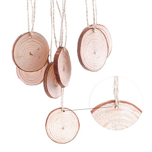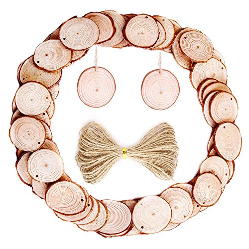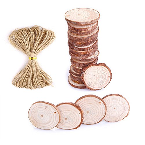 Caydo 50 Pieces 1.57-1.96 Inch Unfinished Predrilled Wood Slices Round Log Discs with 33 Feet Natrual Jute Twine