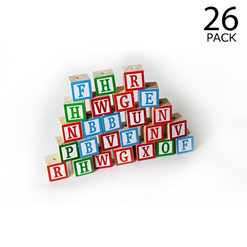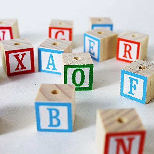 Wooden Block Bird Toy Parts for Small / Medium Birds - 26-Pack by Beakaroos - Parakeet Cockatiel Conure Parrotlet Lovebird Shredder - 1018 ABC Mini Blocks