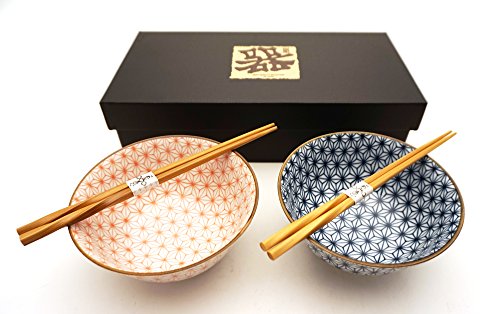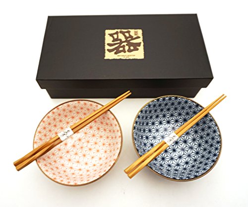 SIZE AND WHAT'S INCLUDED - The beautiful set of bowls measures approximately 6 inches diameter and 2.75 inch tall. The matching chopsticks are approximately 9 inches long. Set includes 2 bowls and 2 pairs of chopsticks, comes packaged in beautiful black gift box