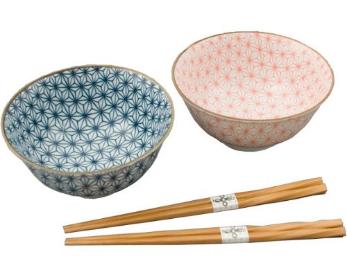 COUPLES SET - This bowl set is designed with traditional Japanese motif which symbolizes good fortune and auspicious living. The two different colors of blue and pink symbolizes harmony between couples. Perfect for couples daily use