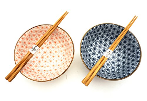 Beautiful set of japanese ramen/udon bowls with matching chopsticks set