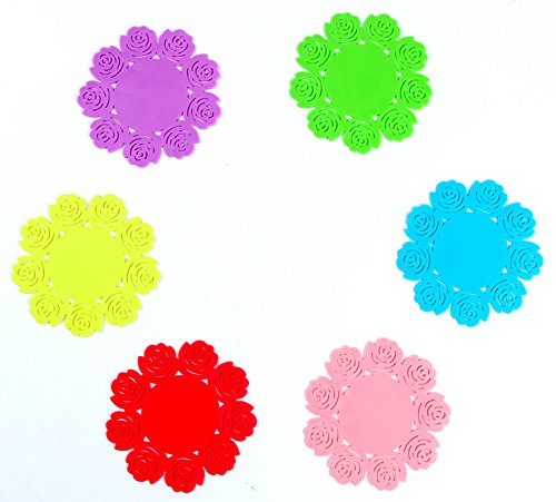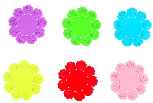 Round Rose Shape Decoration Silicone Cold Bar Drink Coasters Set of 12 (Small)