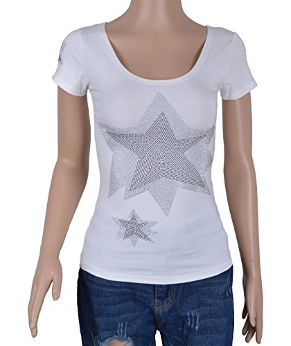 -. Title : Buankoxy レディース ラウンドネック 半袖Tシャツ  ラインストーン