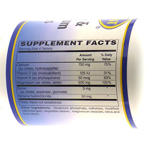 Magnesium is important in more than 300 chemical reactions that keep the body working properly. Our unique formula provides powerful support for healthy bones and can assists with deficiencies in the body, for example, magnesium deficiency. As a dietary supplement, adults take four (4) tablets daily with meals, or as directed by a health care professional. Store in a cool, dry place and away from direct light. These statements have not been evaluated by the Food and Drug Administration. This product is not intended to diagnose, treat, cure, or prevent any disease.Feature